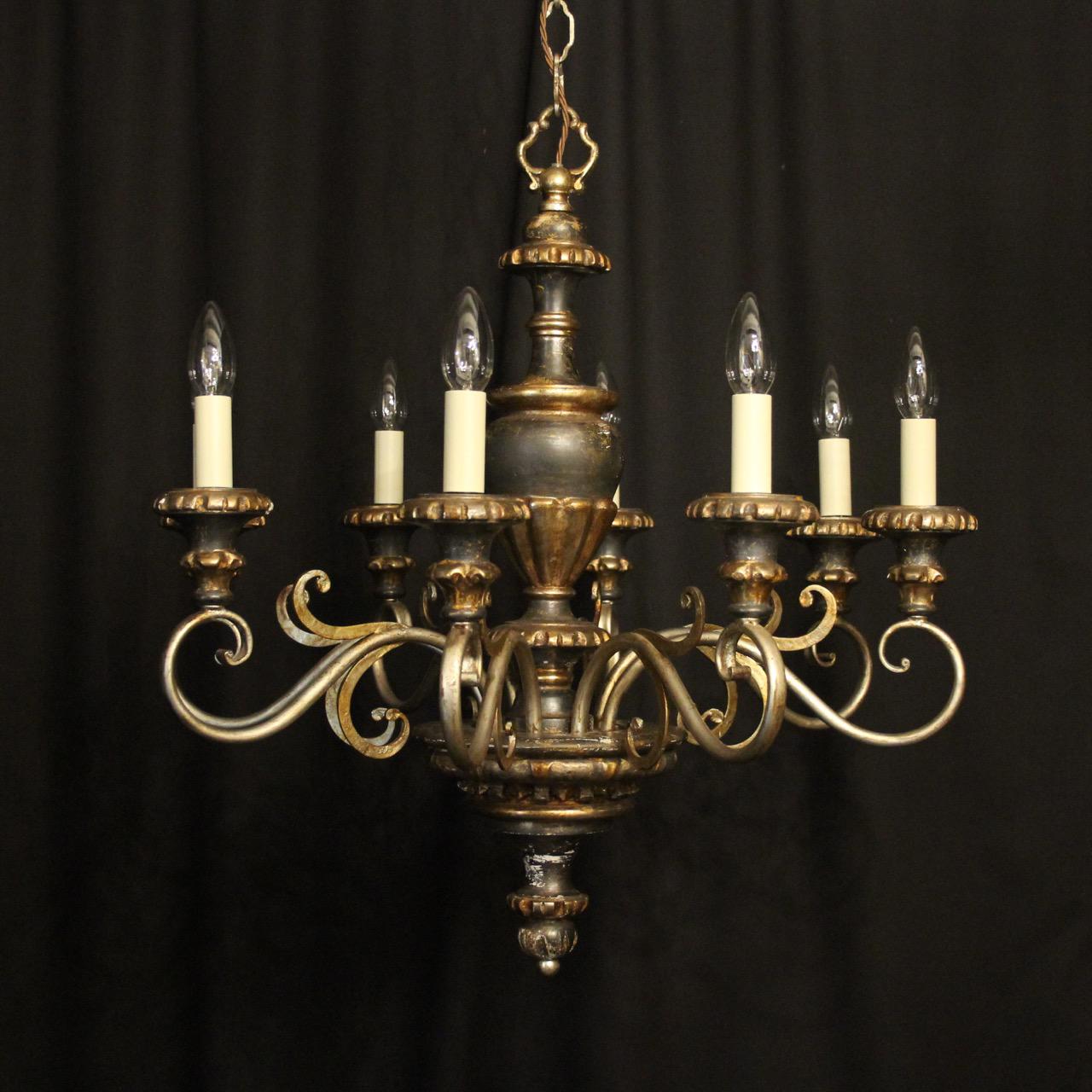 Italian Florentine Silver Giltwood 6 Light Chandelier