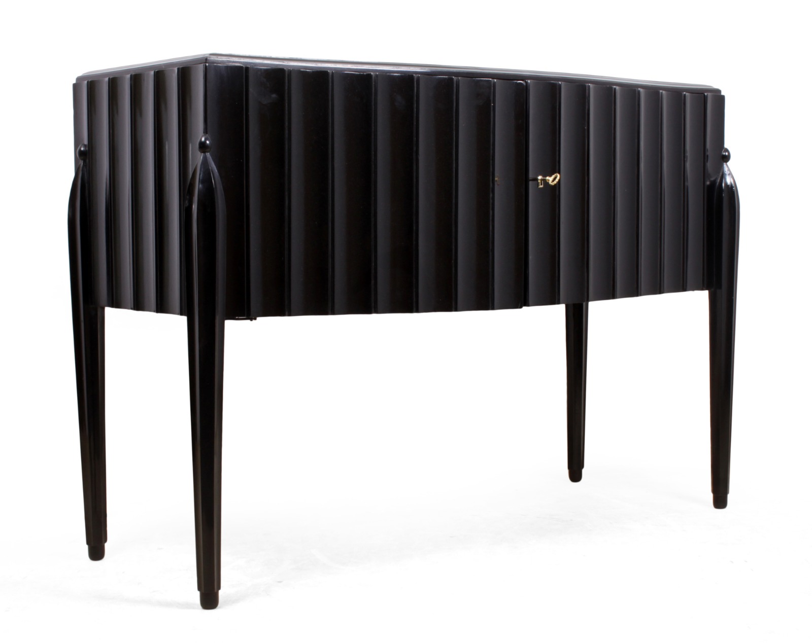 Italian Fluted Art Deco Sideboard in Black Piano Lacquer c.1930