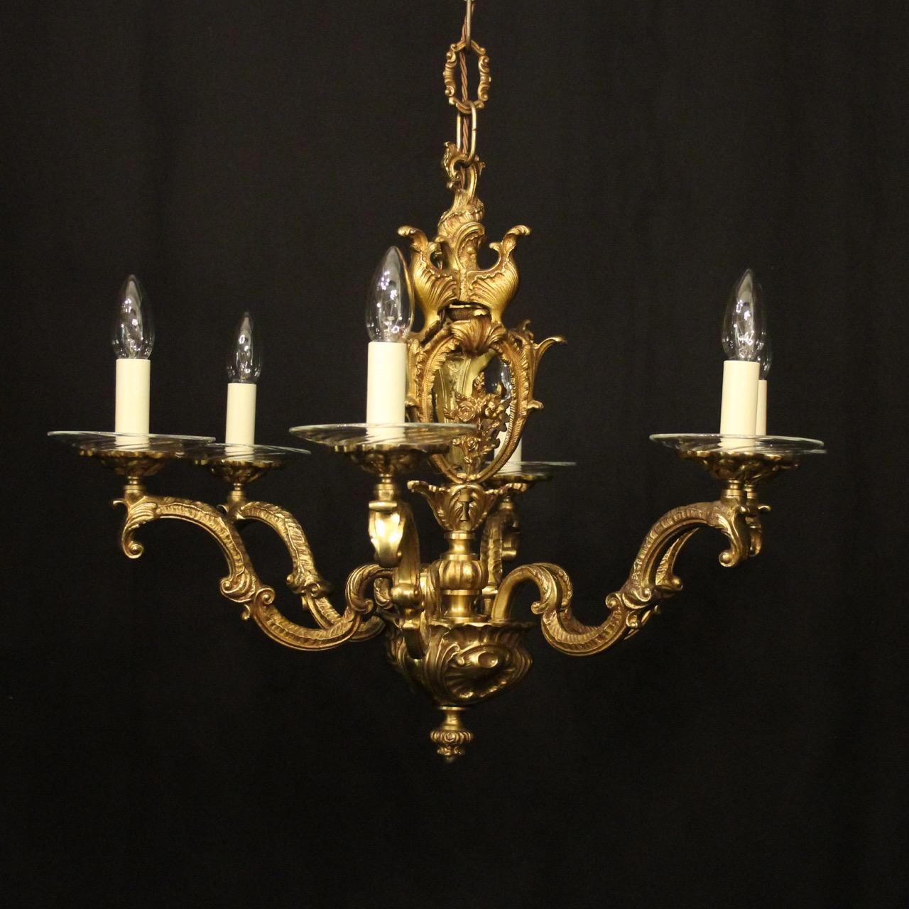 Italian Gilded Bronze 6 Light Antique Chandelier