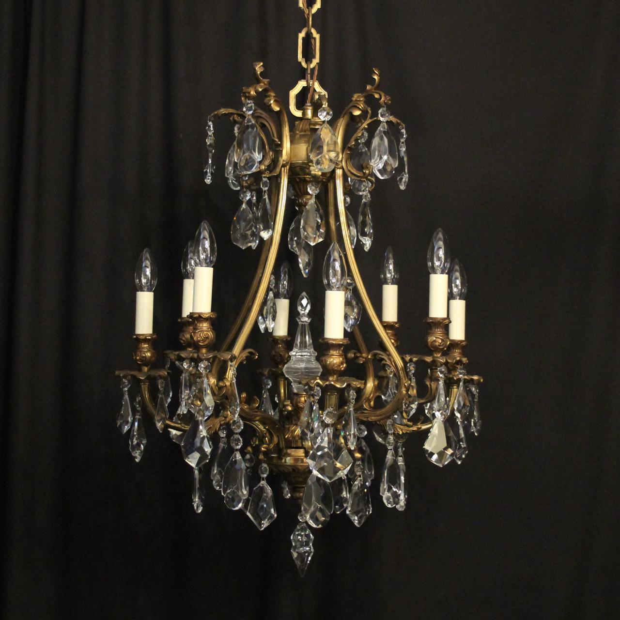 Italian Gilded Bronze & Crystal 8 Light Chandelier
