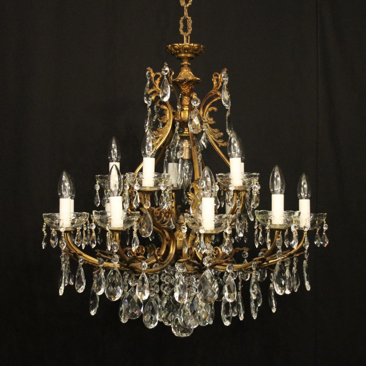 Italian Gilded & Crystal 16 Light Antique Chandelier