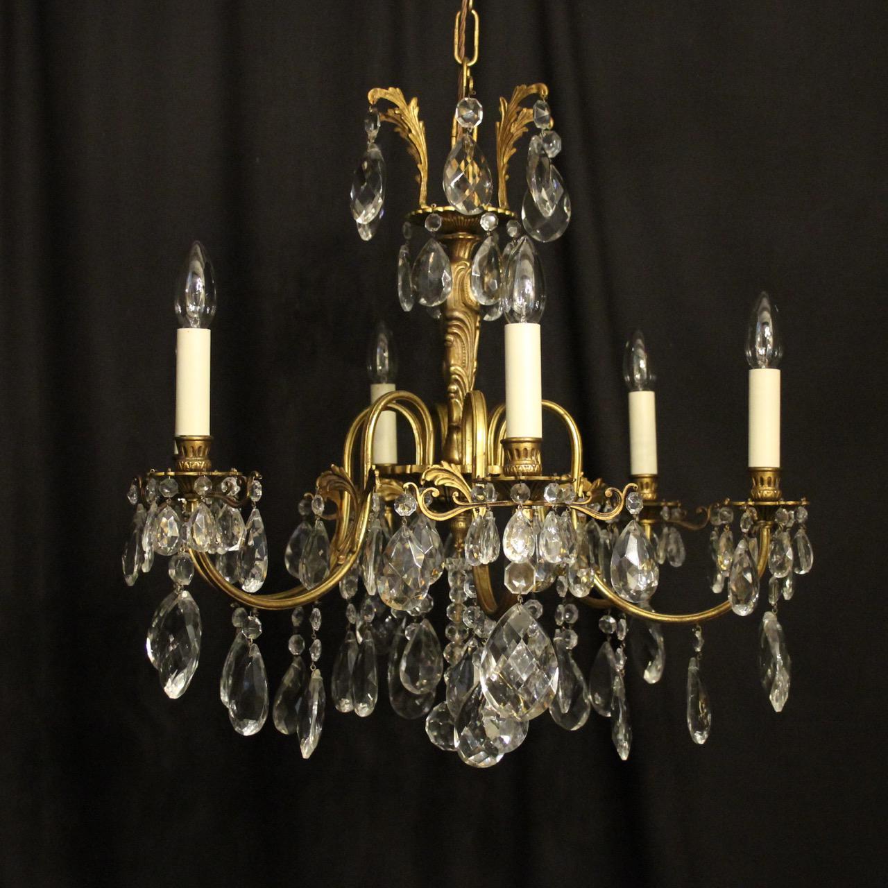 Italian Gilded & Crystal 6 Light Antique Chandelier