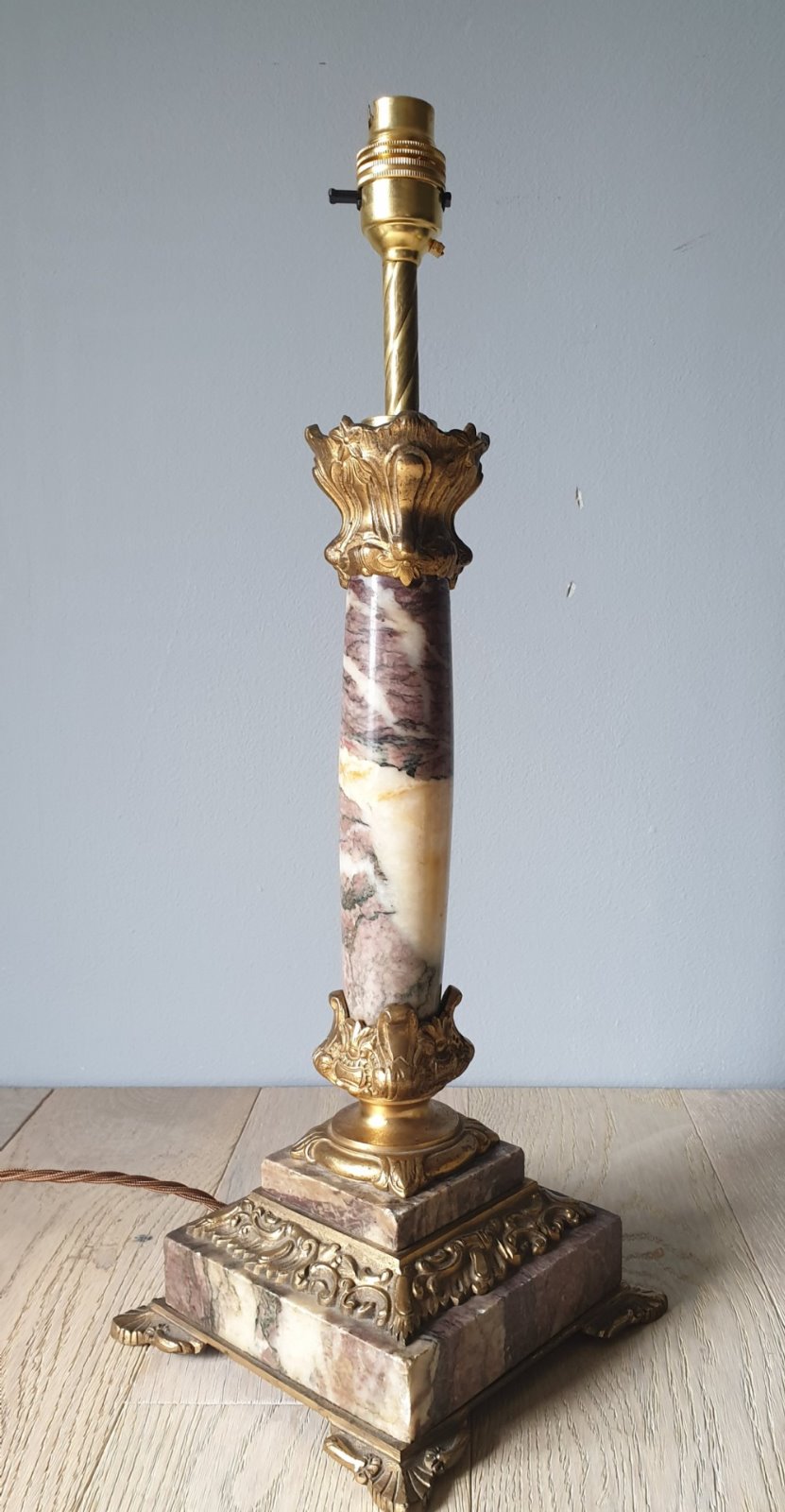 Italian Gilt Brass Marble Column Table Lamp, Rewired & Pat Tested