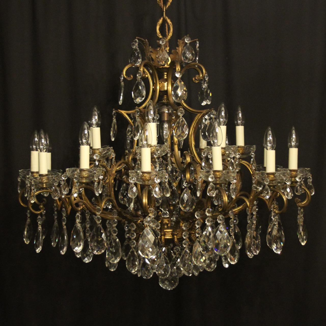 Italian Gilt & Crystal 22 Light Antique Chandelier