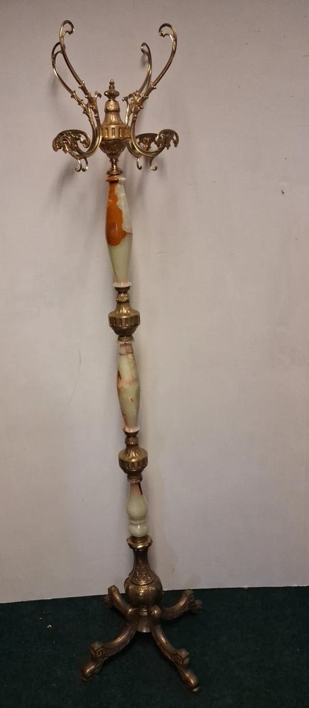 This Italian Hollywood Regency Style Hall Tree Stand Marble Onyx & Brass c.1960 is located in Mid Glamorgan, United Kingdom