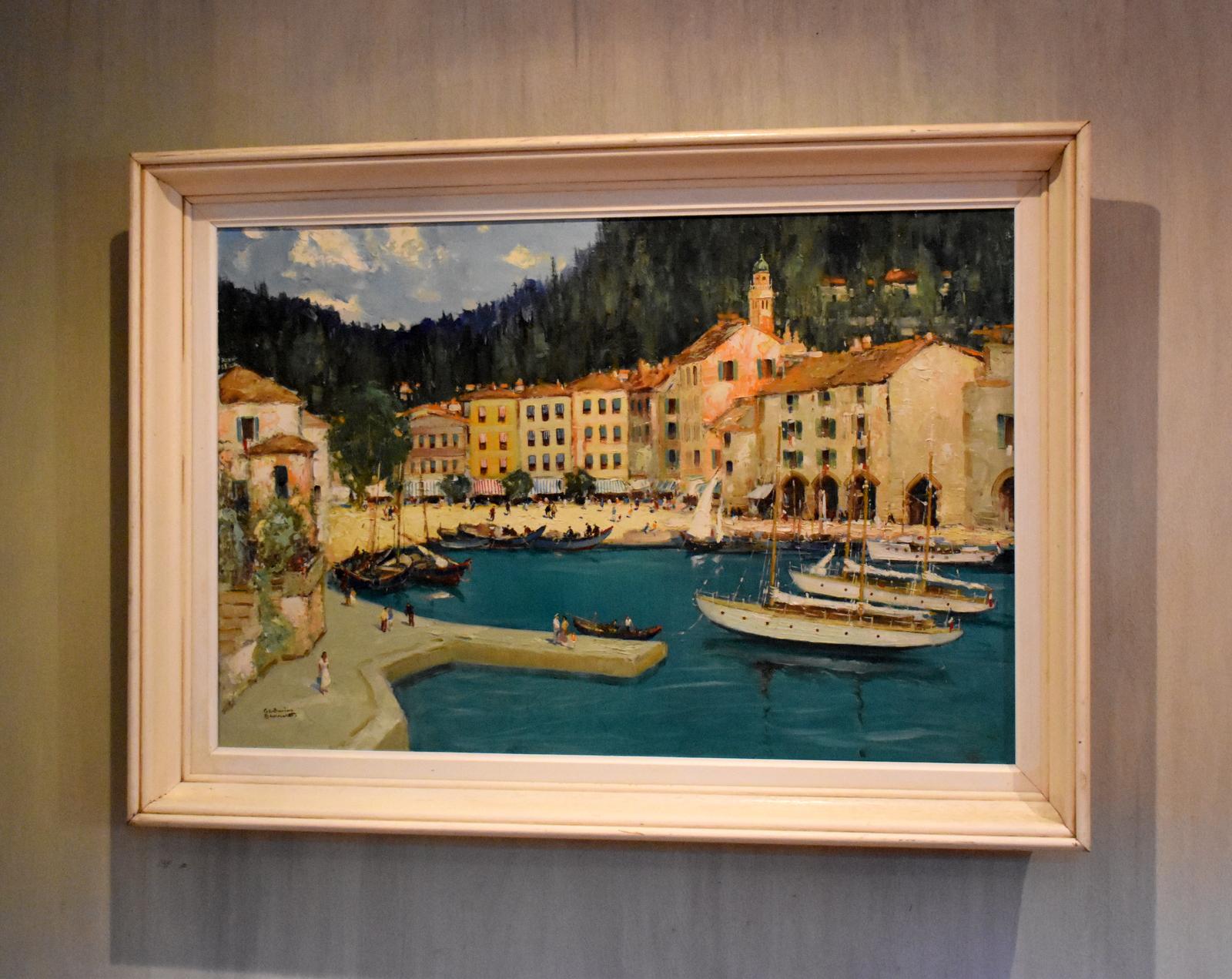 Italian lake scene oil painting by Godwin Bennett (1 of 8)