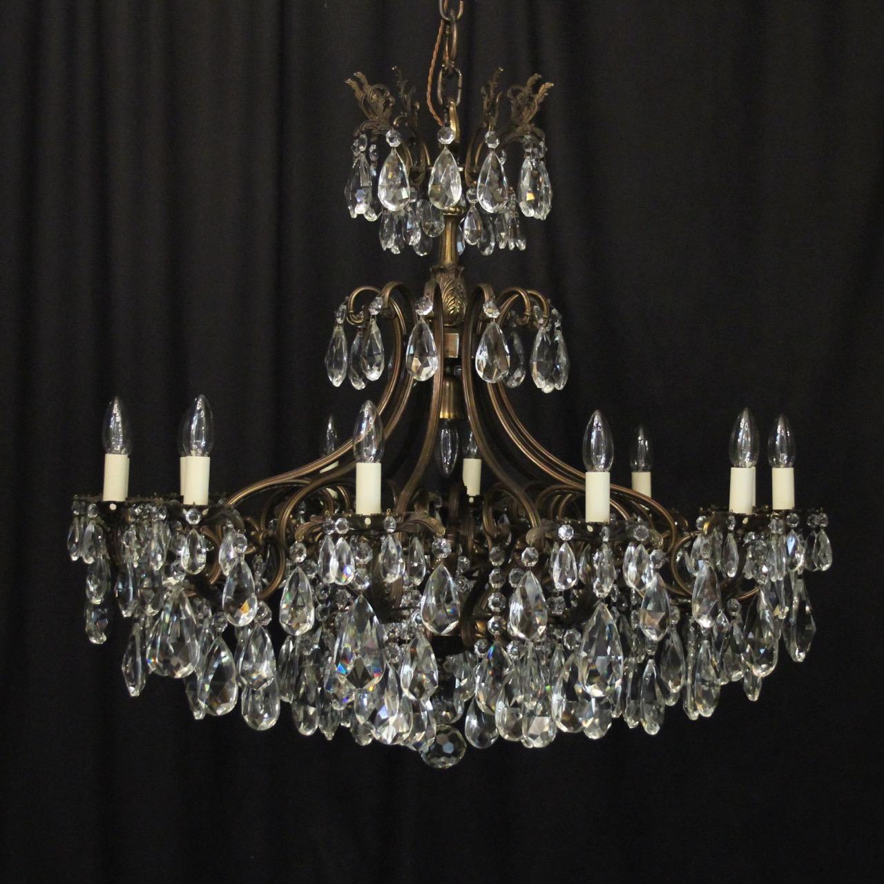 Italian Large Pair of Crystal 13 Light Antique Chandeliers
