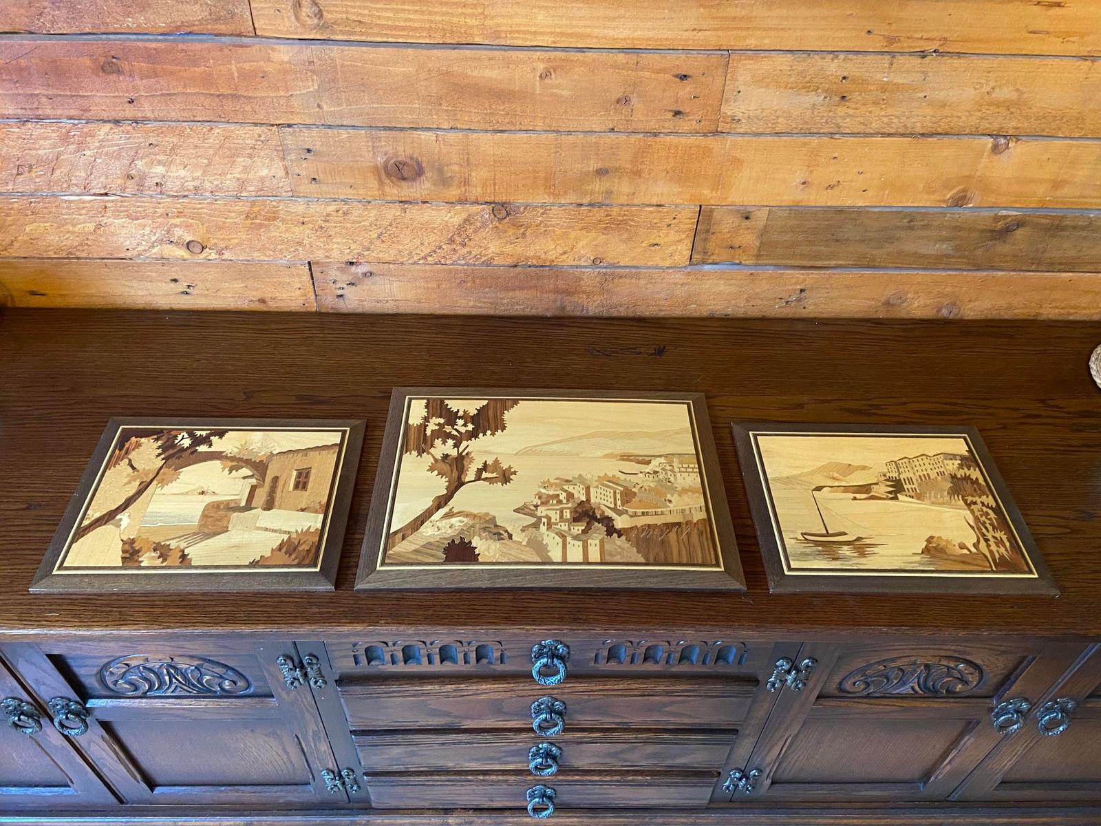 Italian Mid Century Marquetry Wood Inlay Wall Plaque / Made in Sorrento 1950s