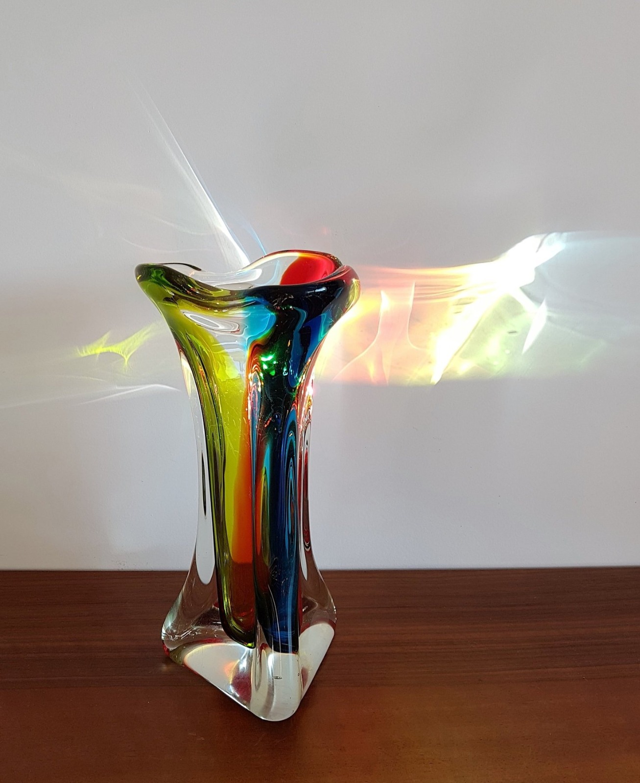 Italian Murano Sommerso att to Flavio Poli for Seguso Red, Blue, Chartreuse Green 3 Lobed Vase
