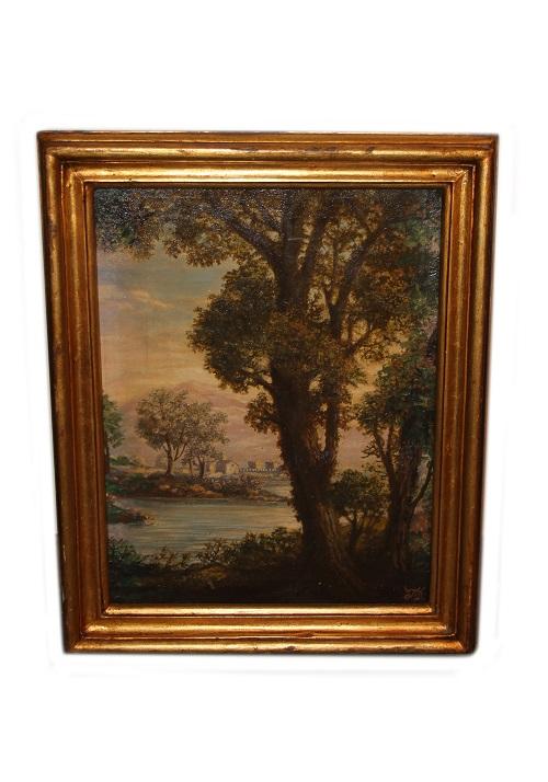 Italian Oil on Canvas Depicting a Landscape with a Sea View from the 19th Century