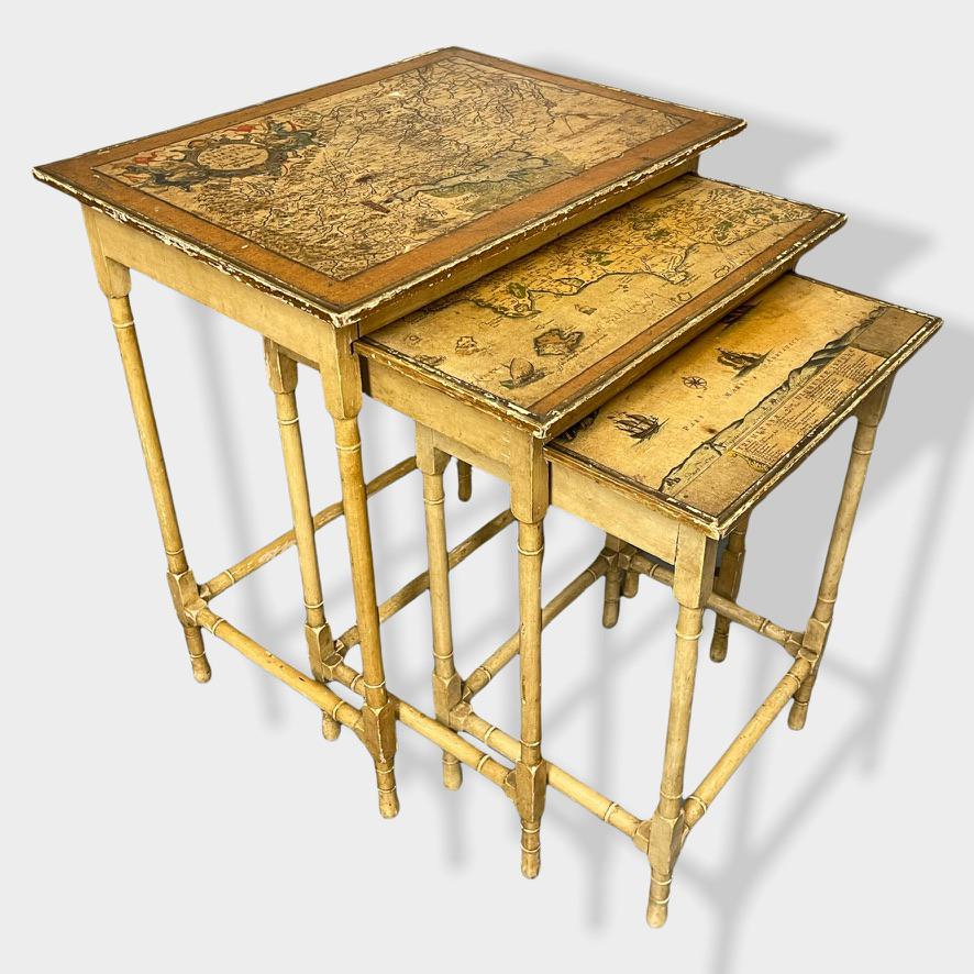 Italian Painted Nest of Tables with Map Prints (1 of 10)