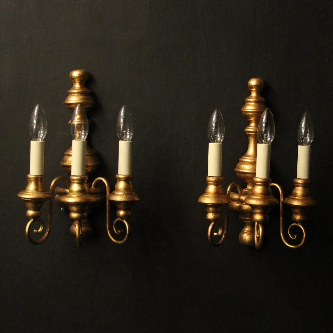 Italian Pair Of Gilded Triple Arm Wall Lights