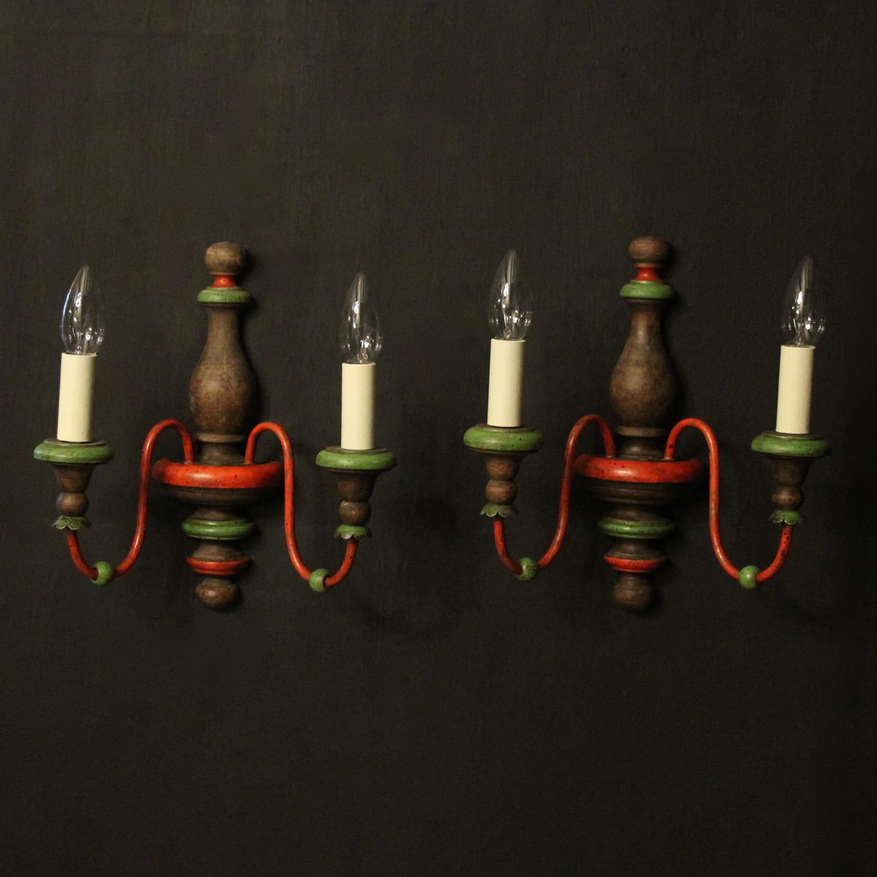 Italian Pair Of Polychrome Twin Arm Wall Lights