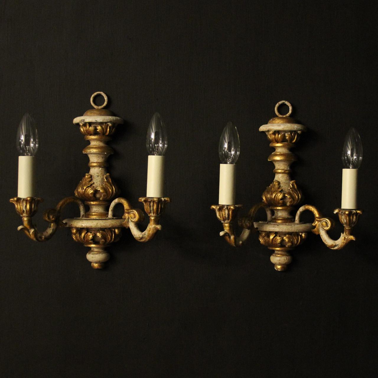 Italian Pair of Polychrome Twin Arm Wall Lights