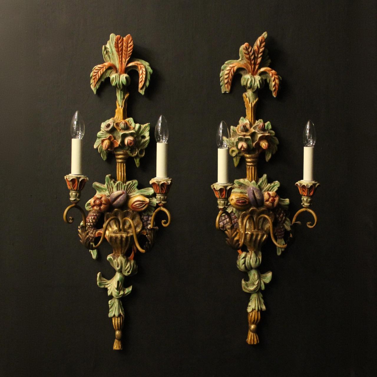 Italian Pair of Polychrome Twin Arm Wall Lights