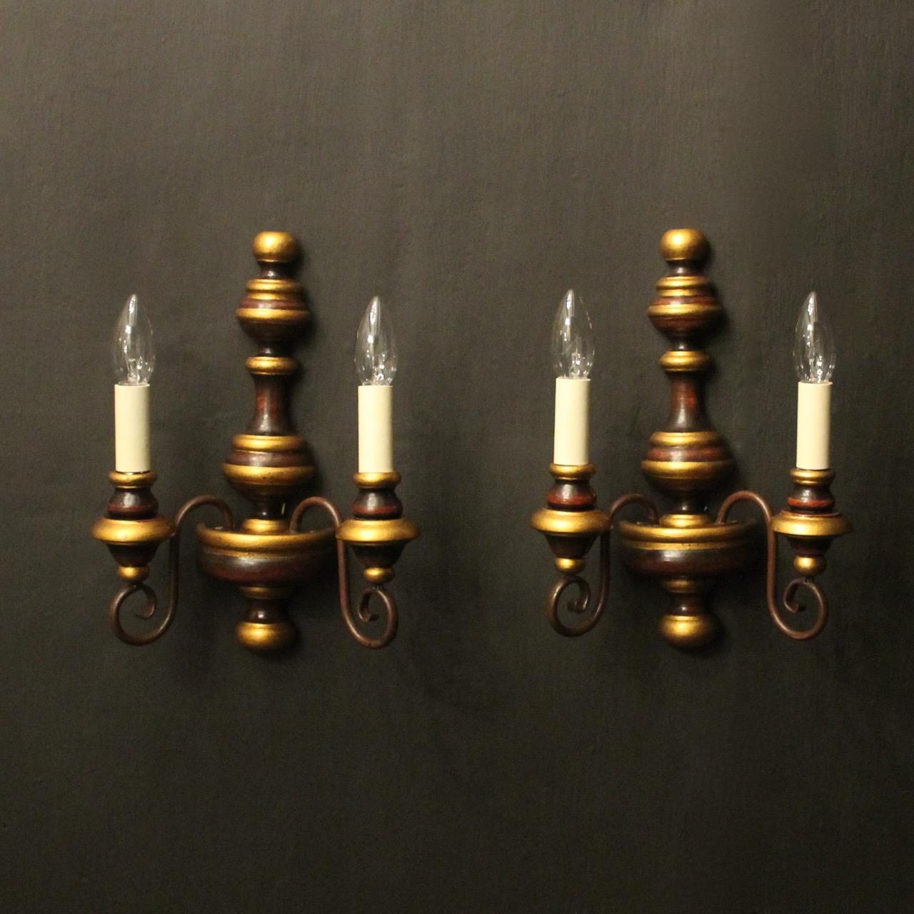 Italian Pair of Polychrome Twin Arm Wall Lights