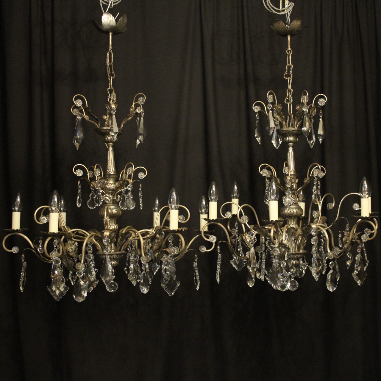 Italian Pair of Silver Genoa 6 Light Chandeliers