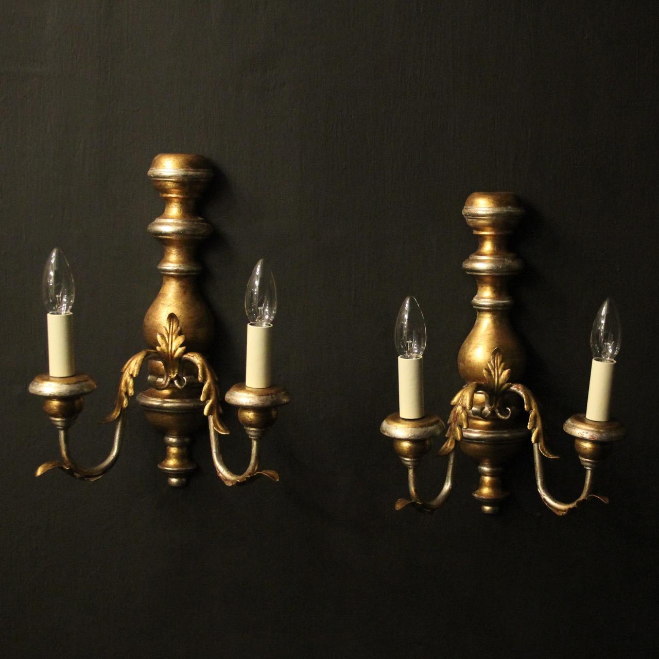 Italian Pair of Silver & Gilt Twin Arm Wall Lights
