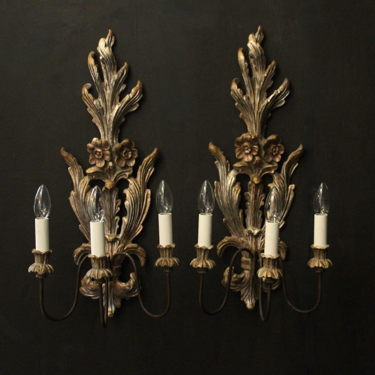 Italian Pair of Silver Giltwood Wall Lights