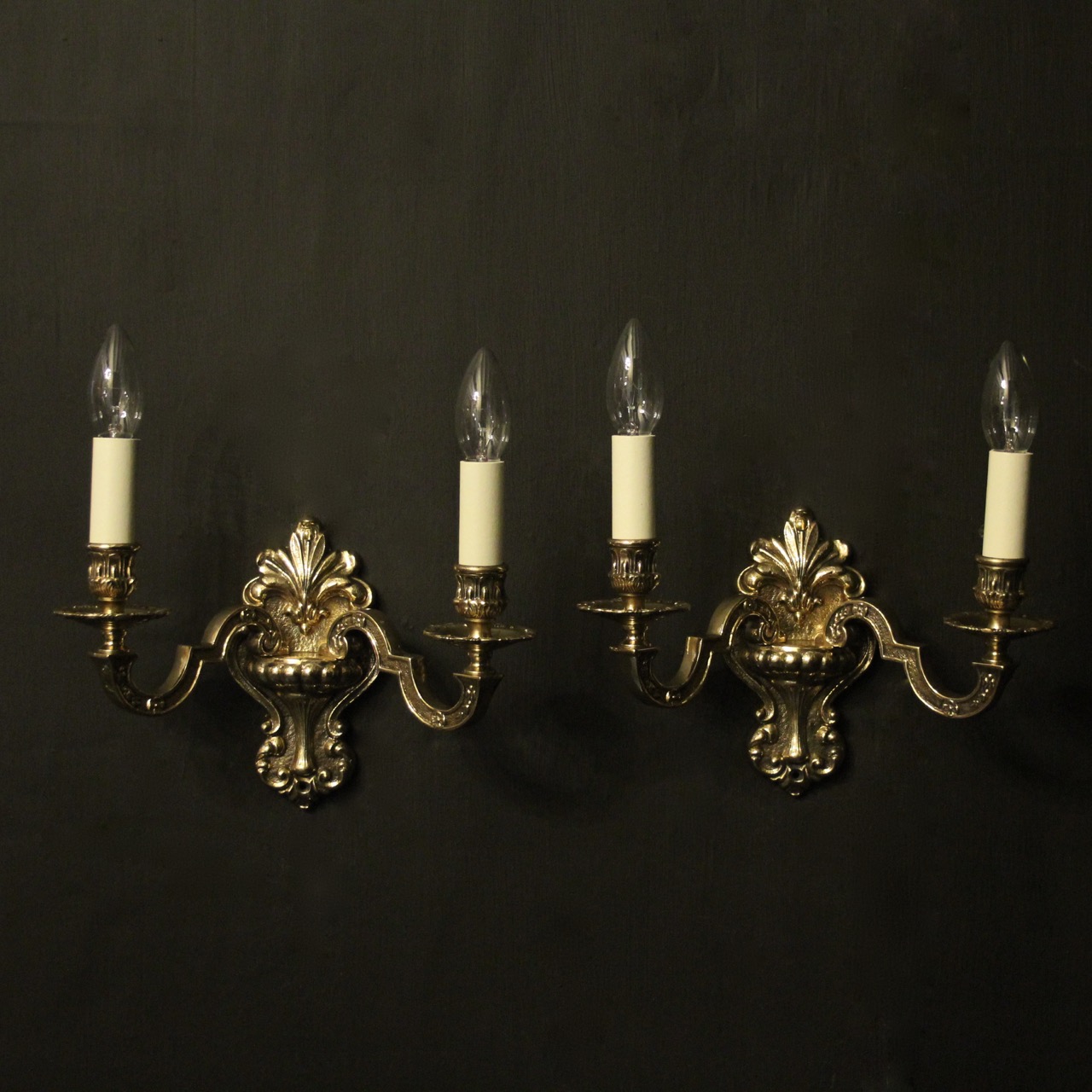 Italian Pair of Twin Arm Brass Wall Lights