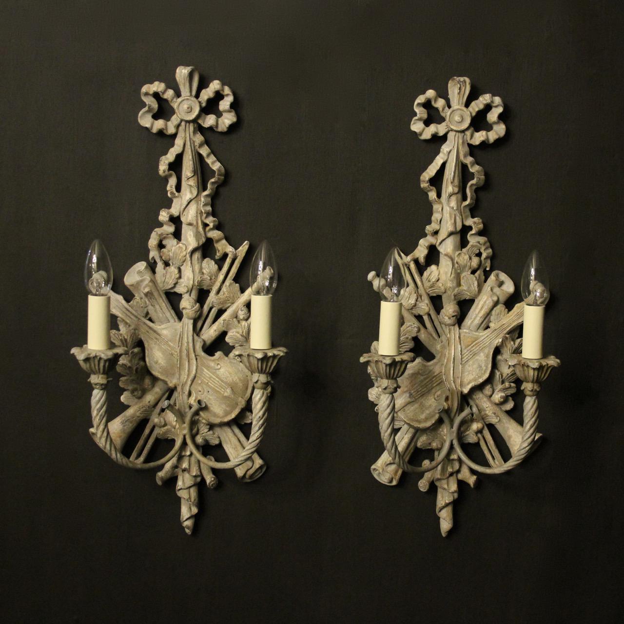 Italian Polychrome Pair of Twin Arm Wall Lights