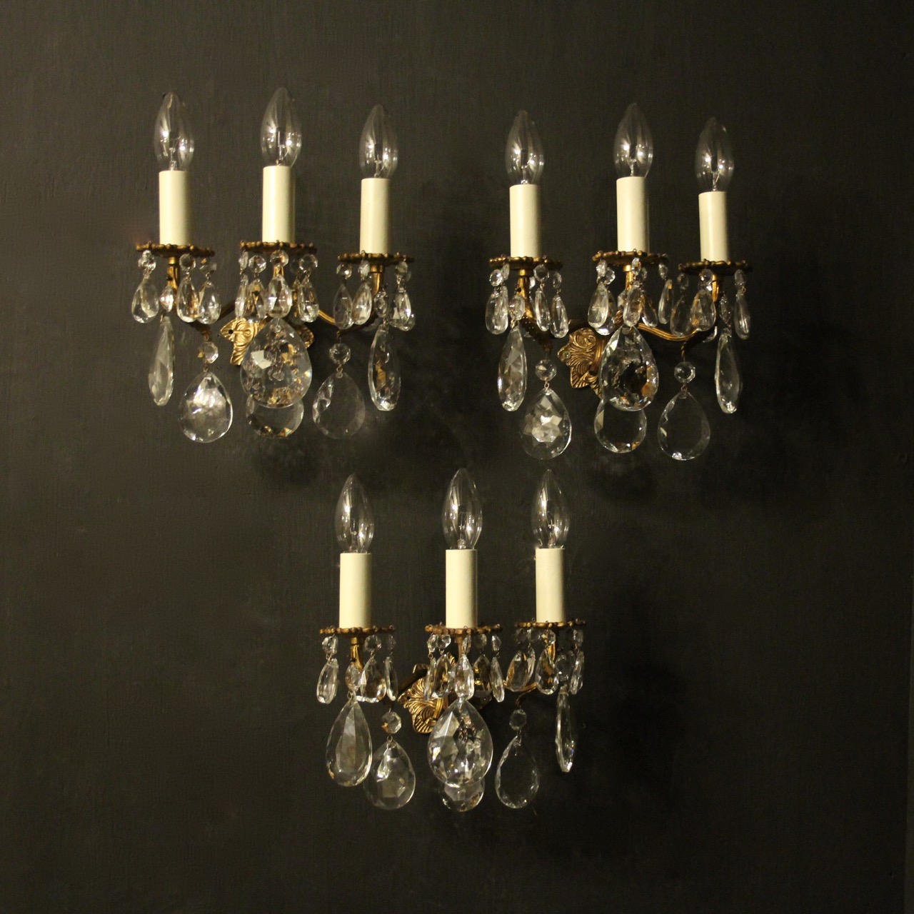 Italian Set of 3 Gilded Triple Arm Wall Lights