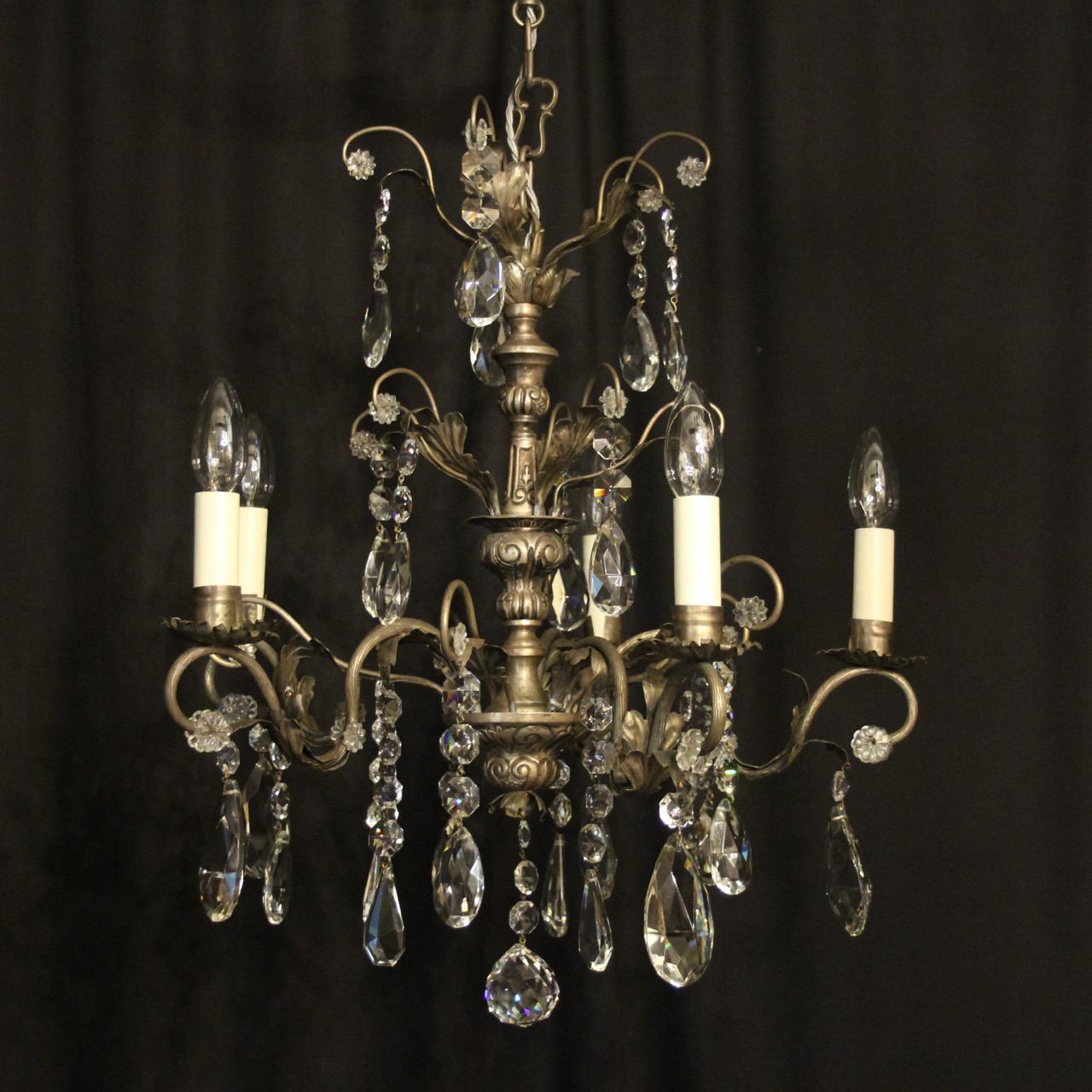Italian Silver & Crystal Genoa 5 Light Chandelier