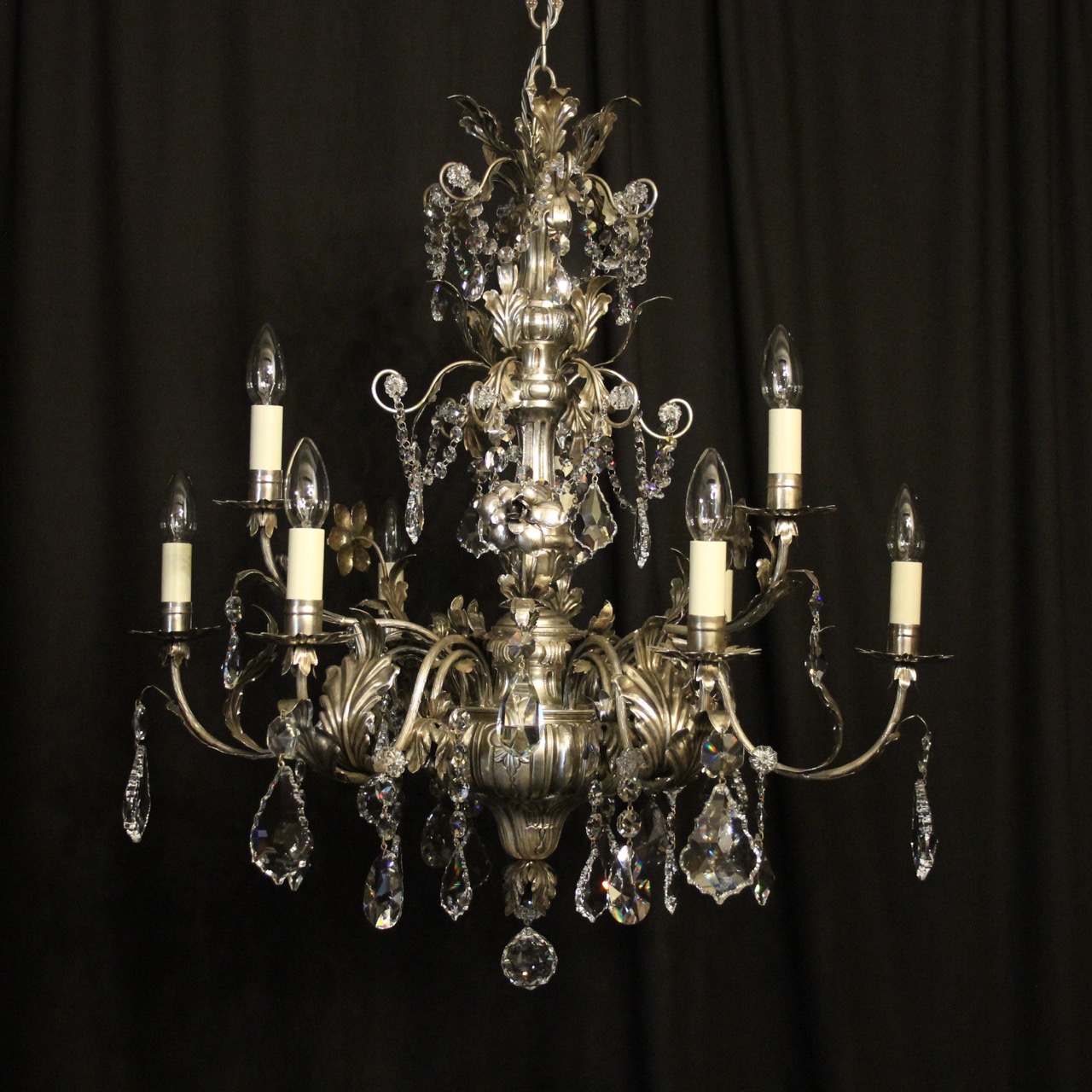 Italian Silver & Crystal Genoa 9 Light Chandelier
