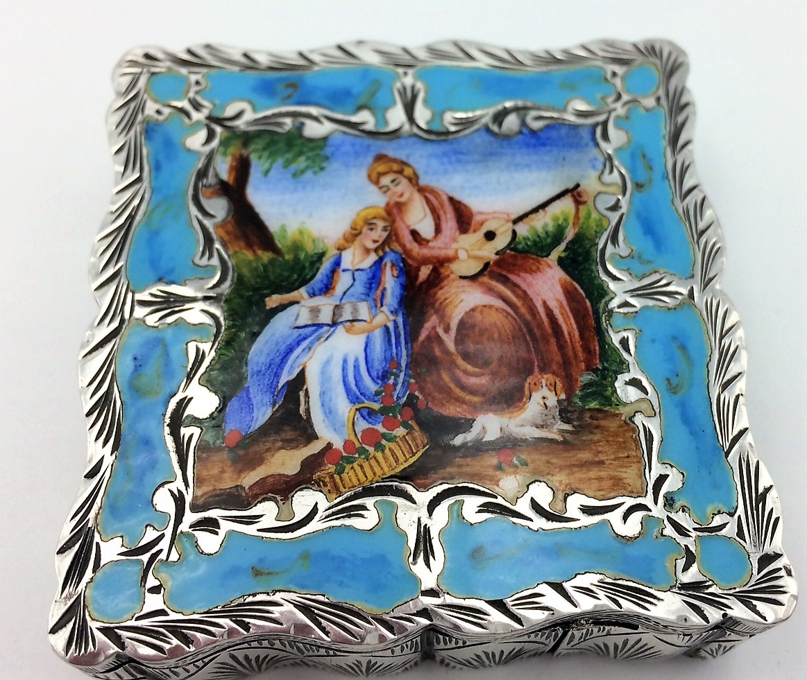 Italian Silver Enamel Compact & Lipstick Holder Import Marks Birmingham 1962