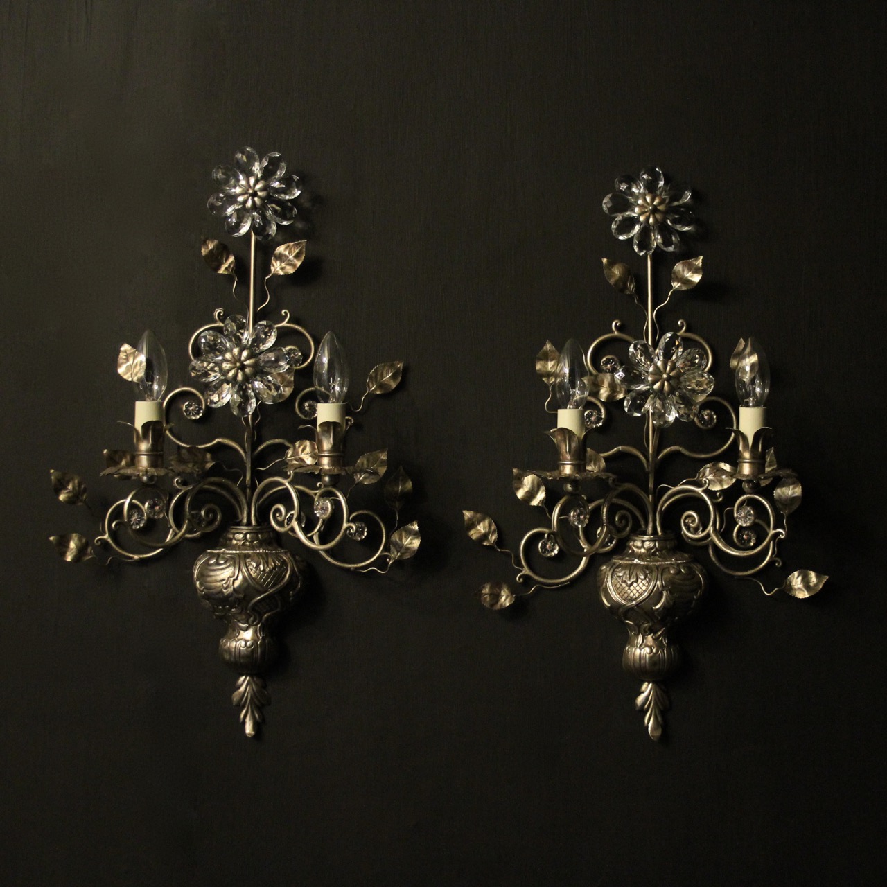 Italian Silver Genoa Twin Arm Wall Lights
