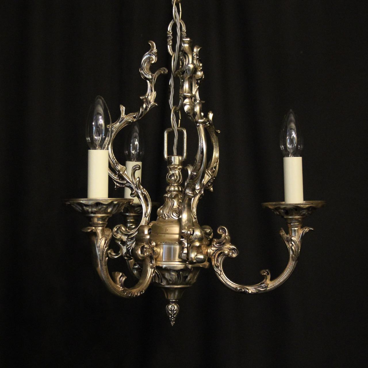 Italian Silver Gilded Triple Light Chandelier