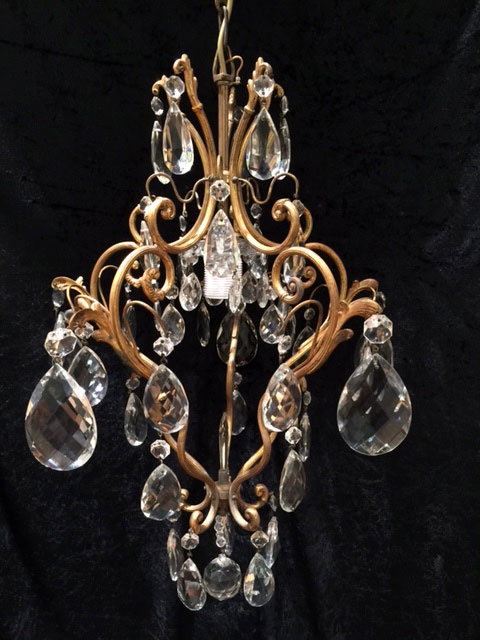 Italian Small Brass & Crystal Chandelier c.1920