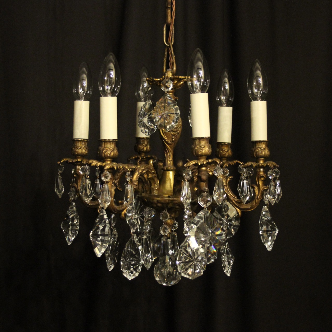 Italian Small Bronze & Crystal 6 Light Chandelier