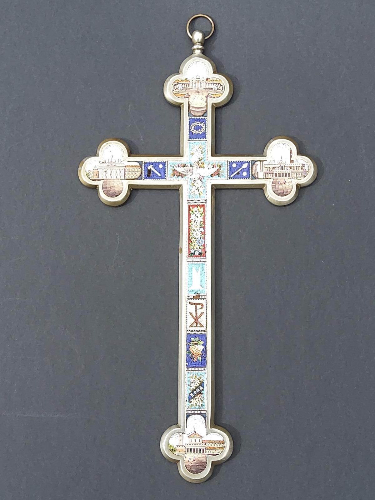 Italian Vatican Micro Mosaic Cross Mounted on Silver Plate (1 of 8)