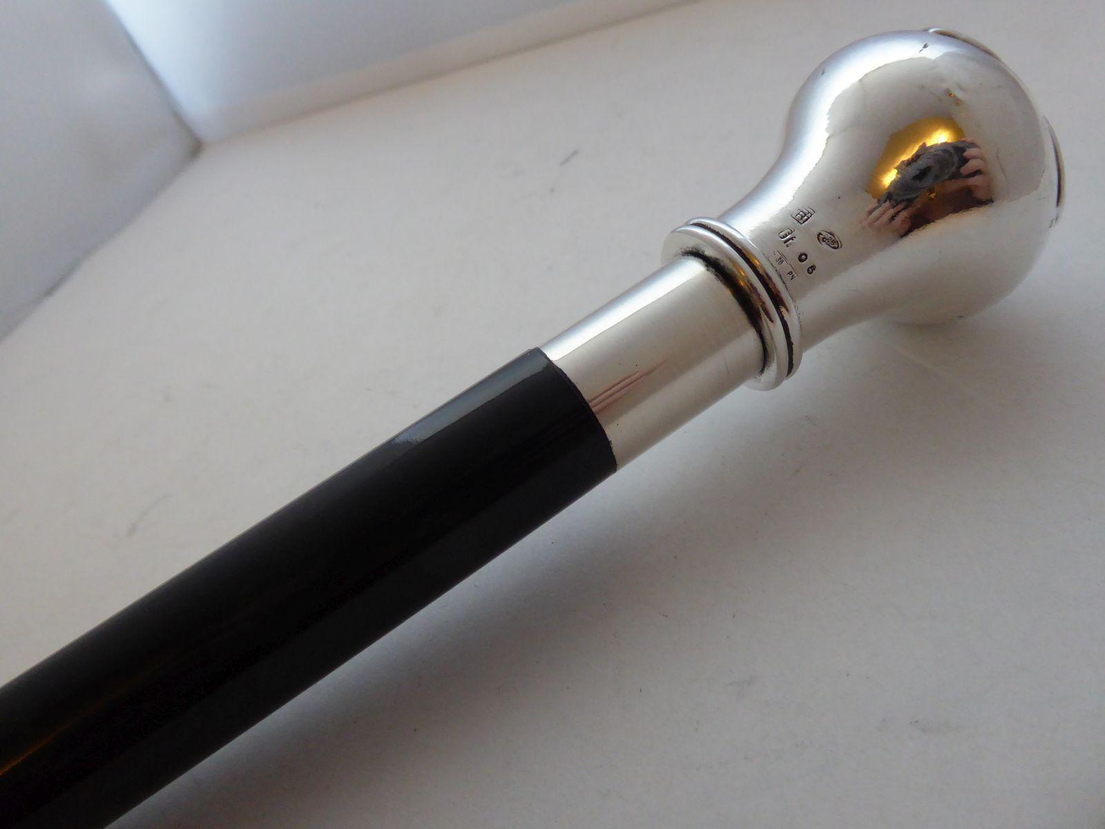 Italian Walking Stick Cane Solid 925 Silver Pommel Ebony Wood Shaft