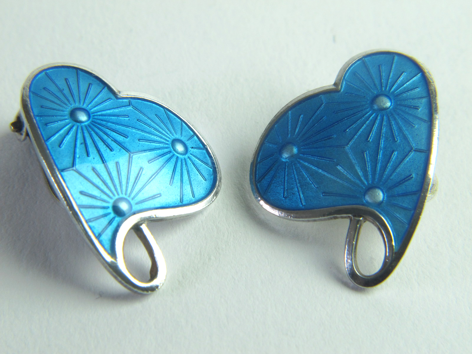 Ivar Holth Norwegian Silver Enamel Clip On Earrings