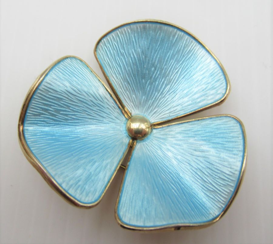 Ivar T Holt, Norway, Vintage Silver Gilt & Enamel Flower Head Brooch