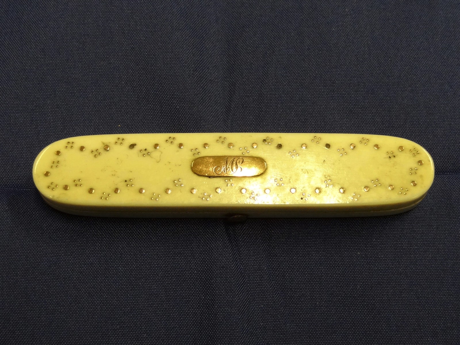 Ivory & Gold Pique Toothpick Box, Initialled Monogram 'Ms' C.1870
