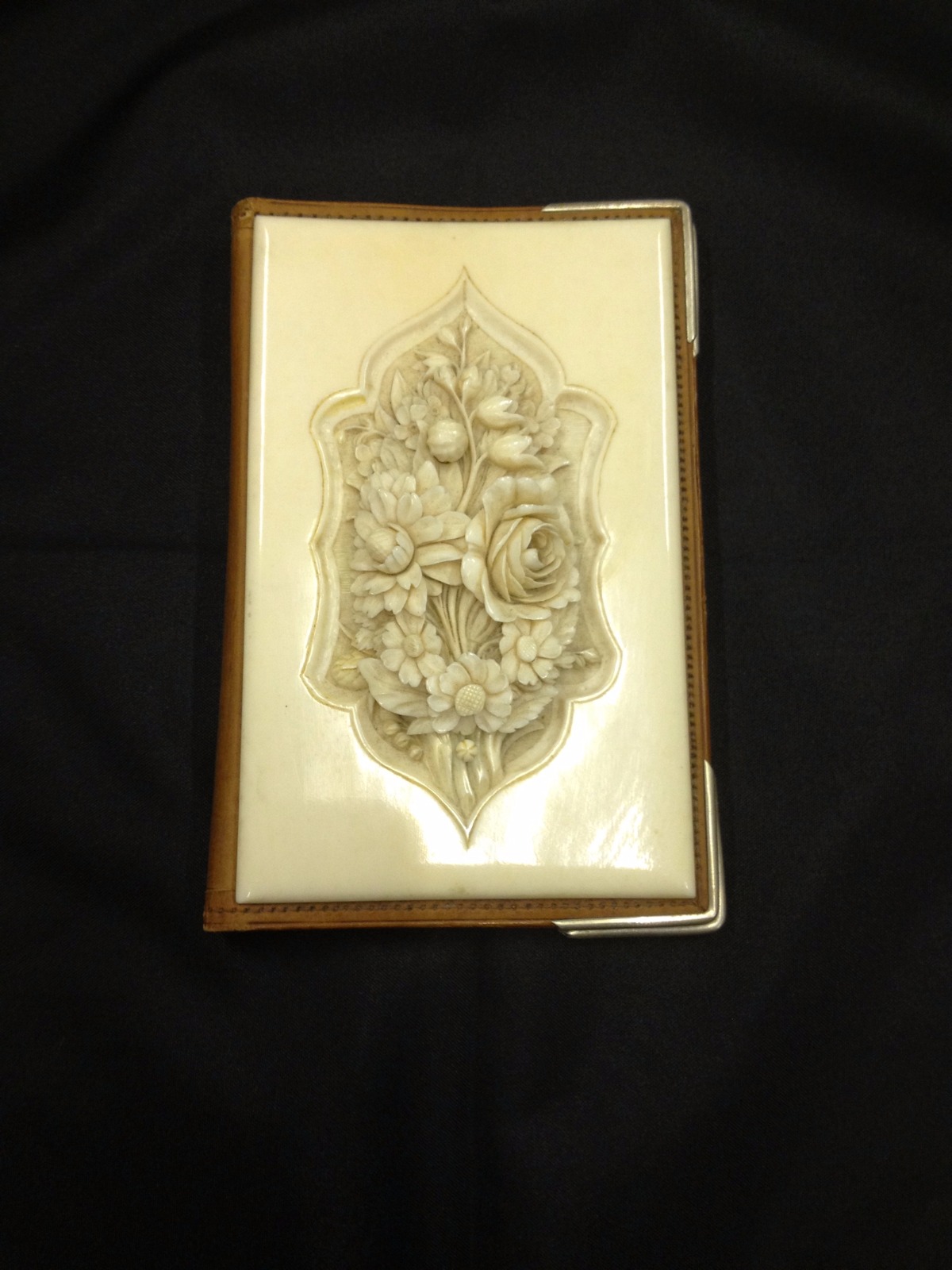 Ivory & Leather Card Case, Floral Relief Cartouche