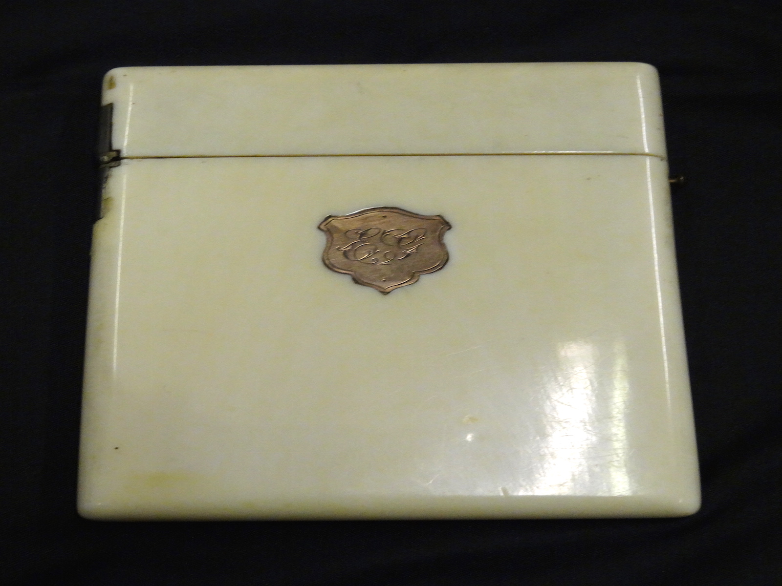 Ivory & Silver Card Case, Shield Type Silver Monogrammed Cartouche, 19th Century