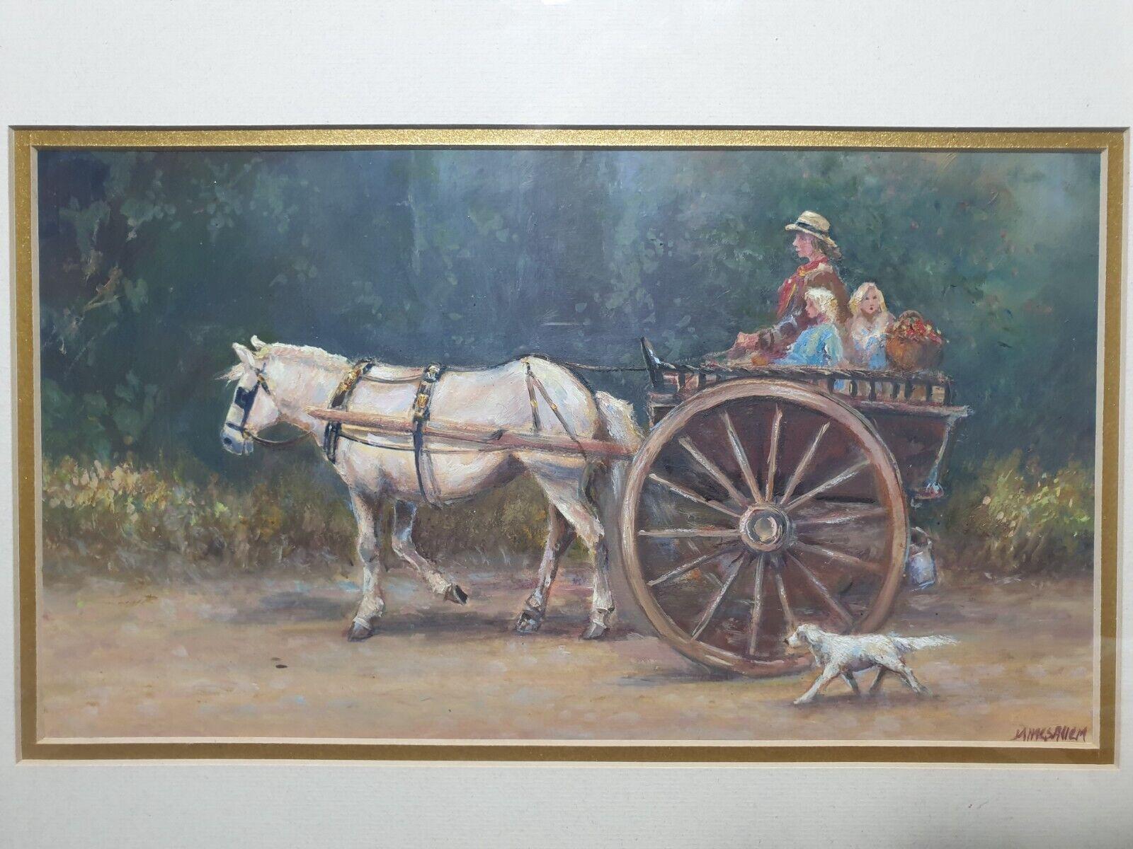 J Allen Hoarse and Cart Gouache Framed Painting Original Antique
