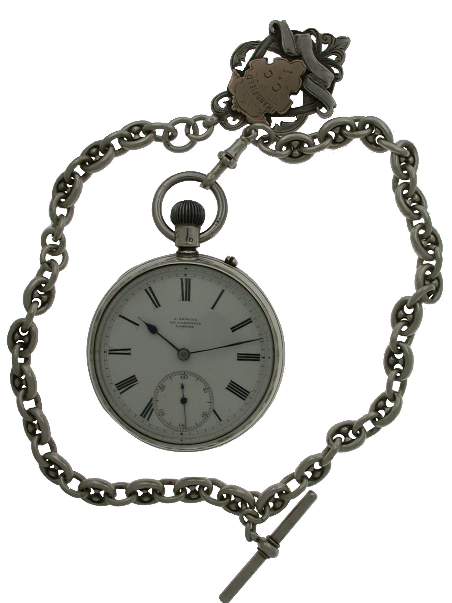 J. Sewill Silver Pocket Watch with Chain Hallmarked for London 1890