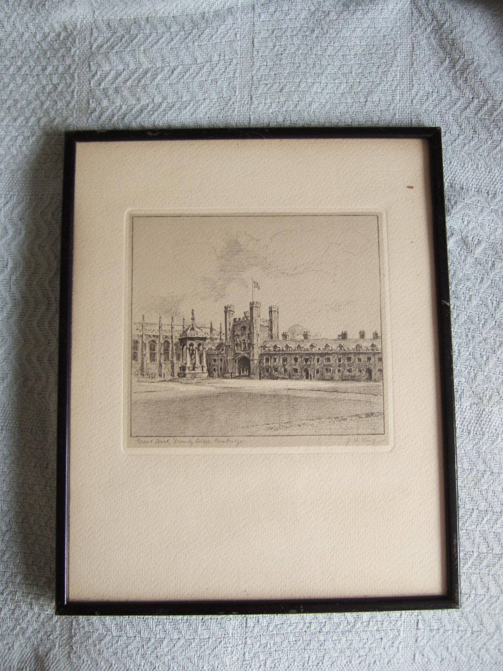 J W King (1868-1935):  Signed Etching of Trinity College, Cambridge (1 of 5)