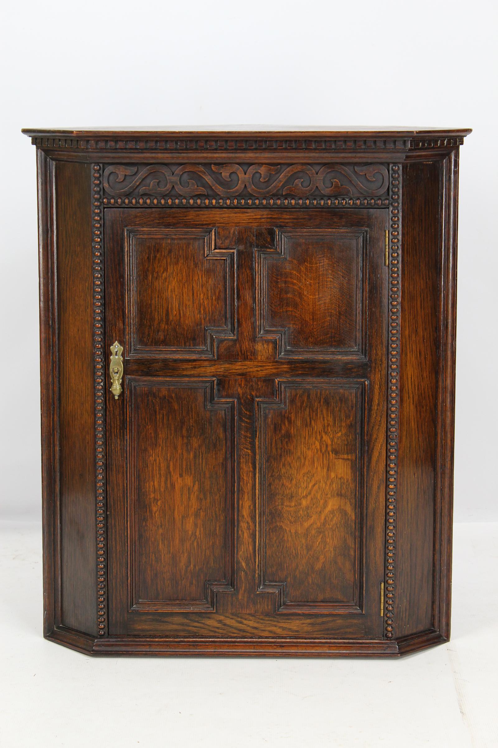 Jacobean Revival Oak Hanging Corner Cupboard (1 of 13)