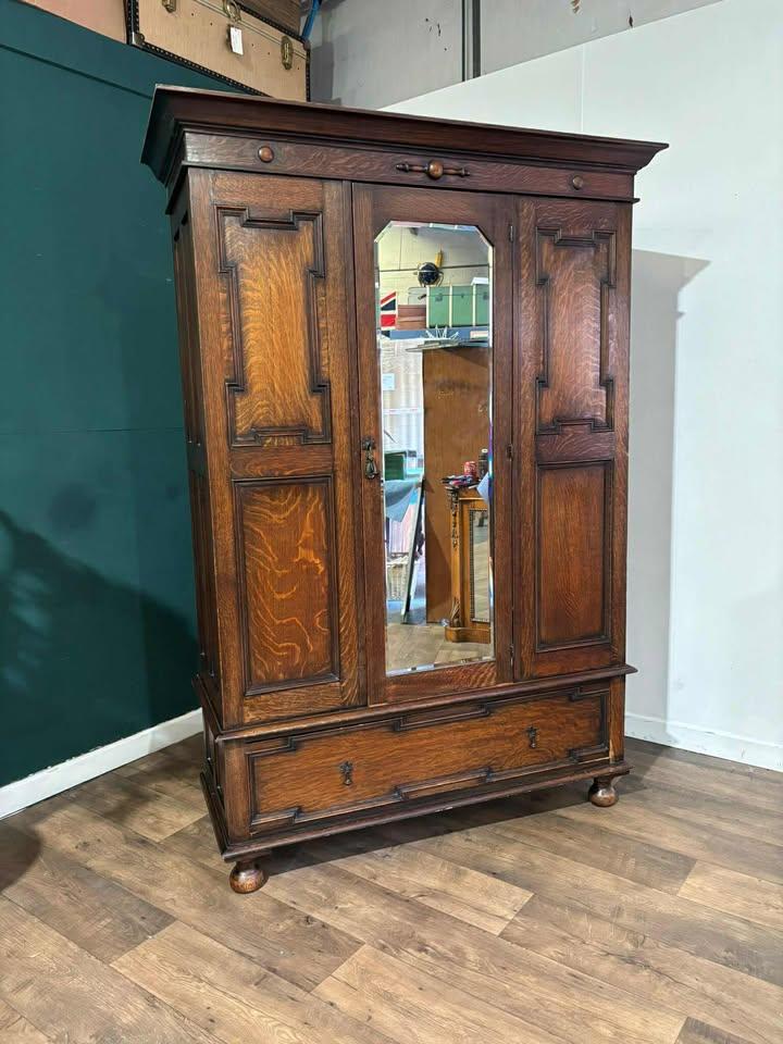 Jacobean Revival Oak Mirrored Wardrobe (1 of 16)