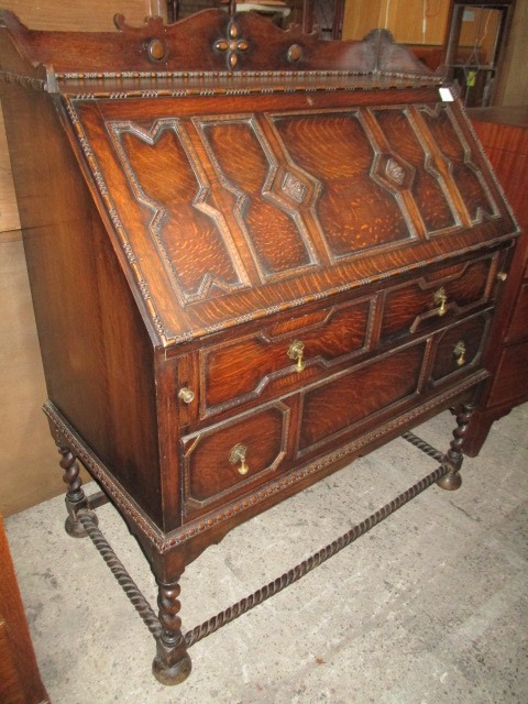 Jacobean Style Barley Twist Oak Bureau c.1930