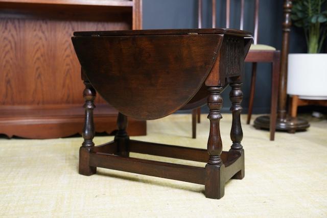 Jacobean Style Folding Drop Leaf Side Table Solid Oak 1930s