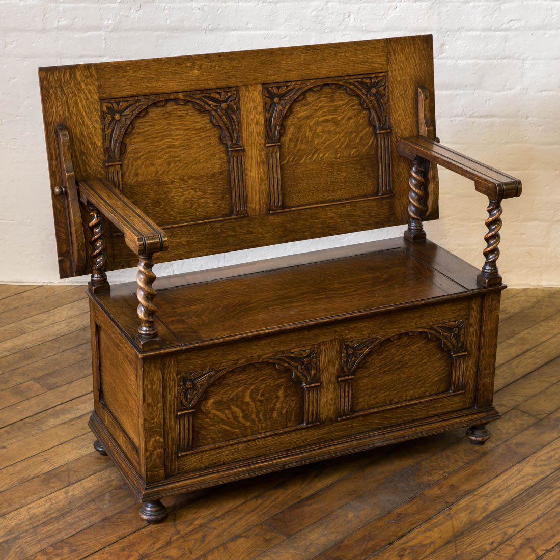 Jacobean Style Oak Monks Bench c.1920