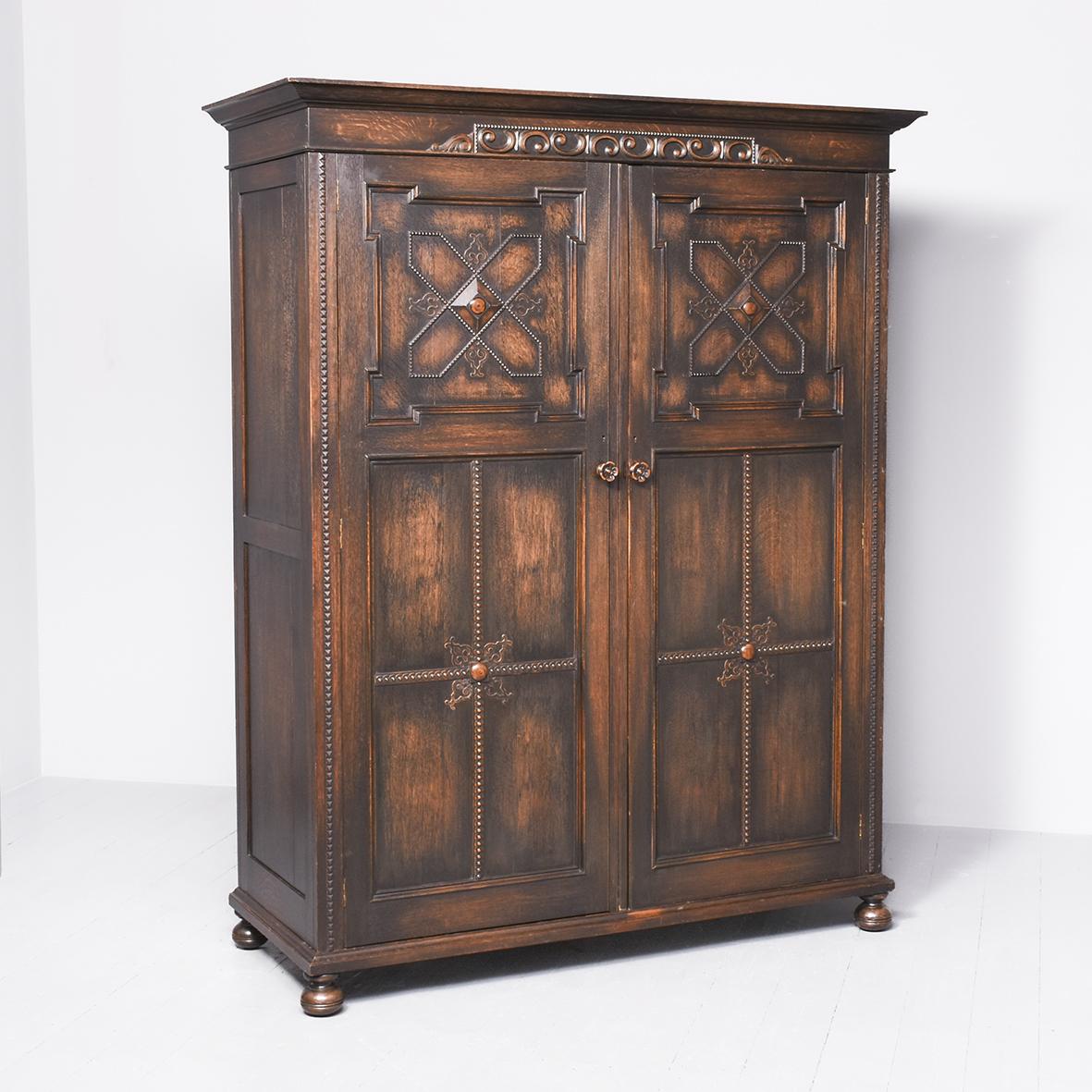 Jacobean Style Oak Two Door Robe (1 of 15)