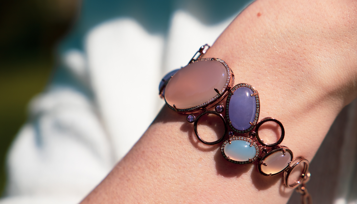Jade & Diamond Bracelet. 9ct Gold Multi Colour Lavander Jade. Superb
